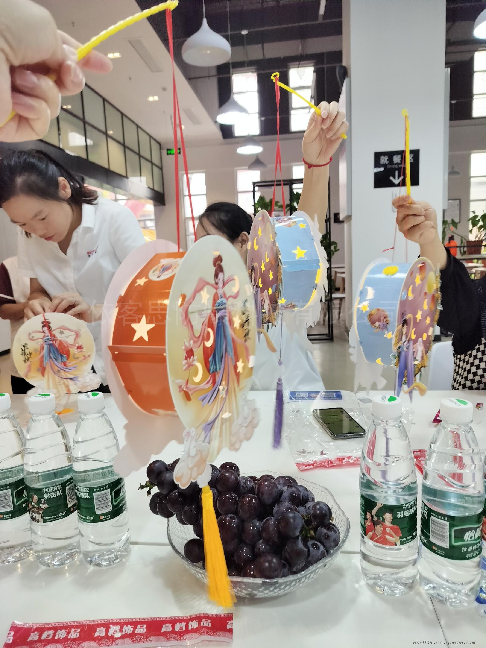 快看我们的灯笼做好了,是不是很漂亮呢?很有节日的气氛呀。浓情中秋,情系依客思,体现依客思领导对员工的关怀,伙伴们相互交流沟通增进了友谊,促进了伙伴之间的和谐发展,使伙伴们更有效的投入到工作中来。