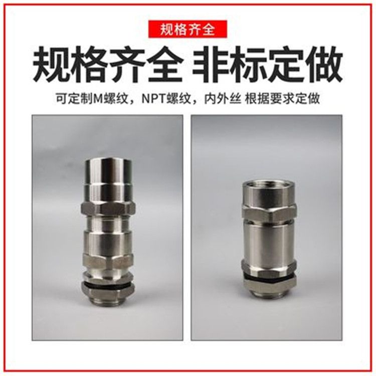 爆格兰头分为铠装和非铠装,主要连接螺纹规格可根据用户要求采用米制螺纹M、管螺纹G、NPT螺纹及PG螺纹等。,是一种能方便安装拆卸的常用管道连接件